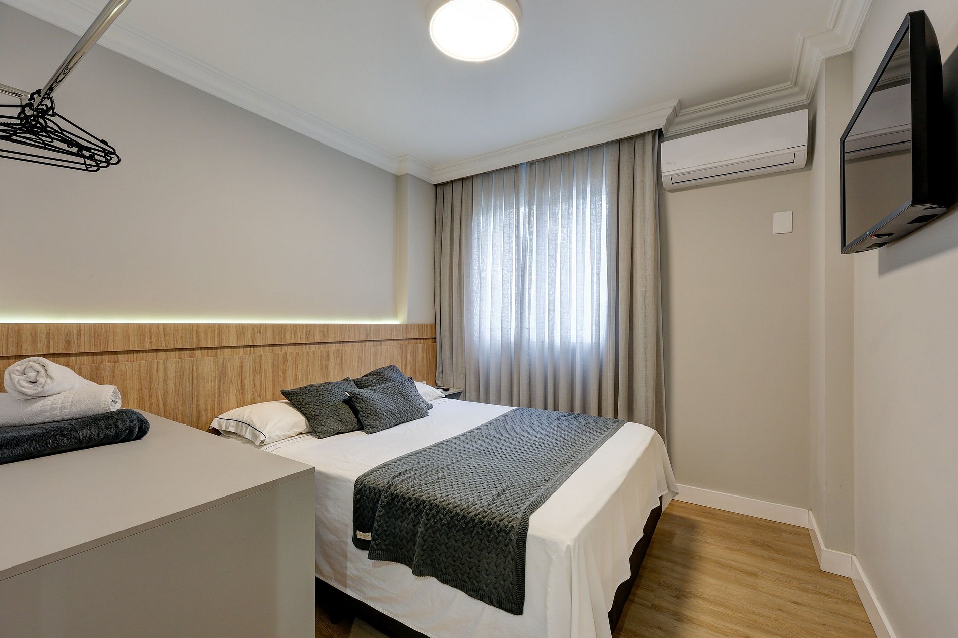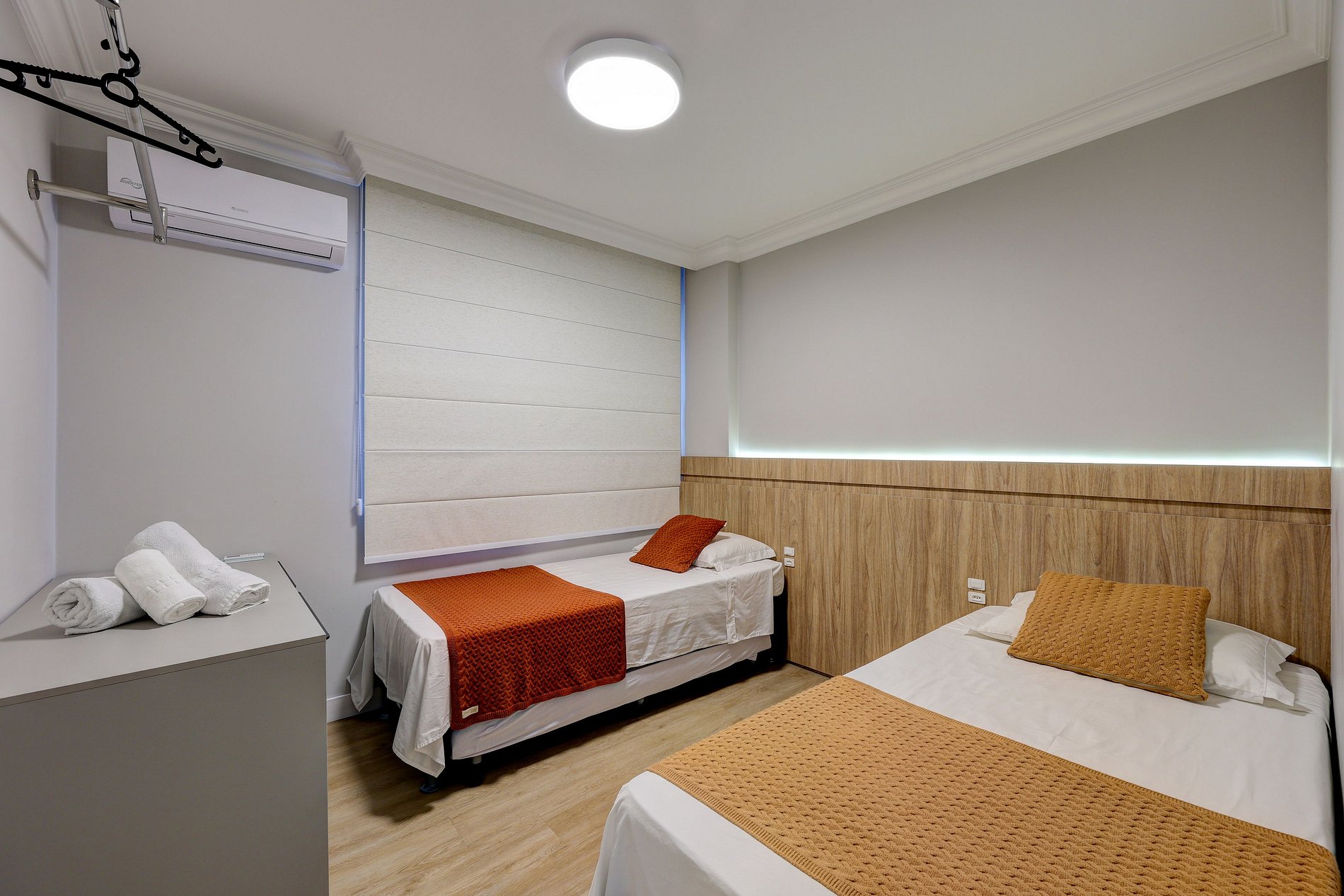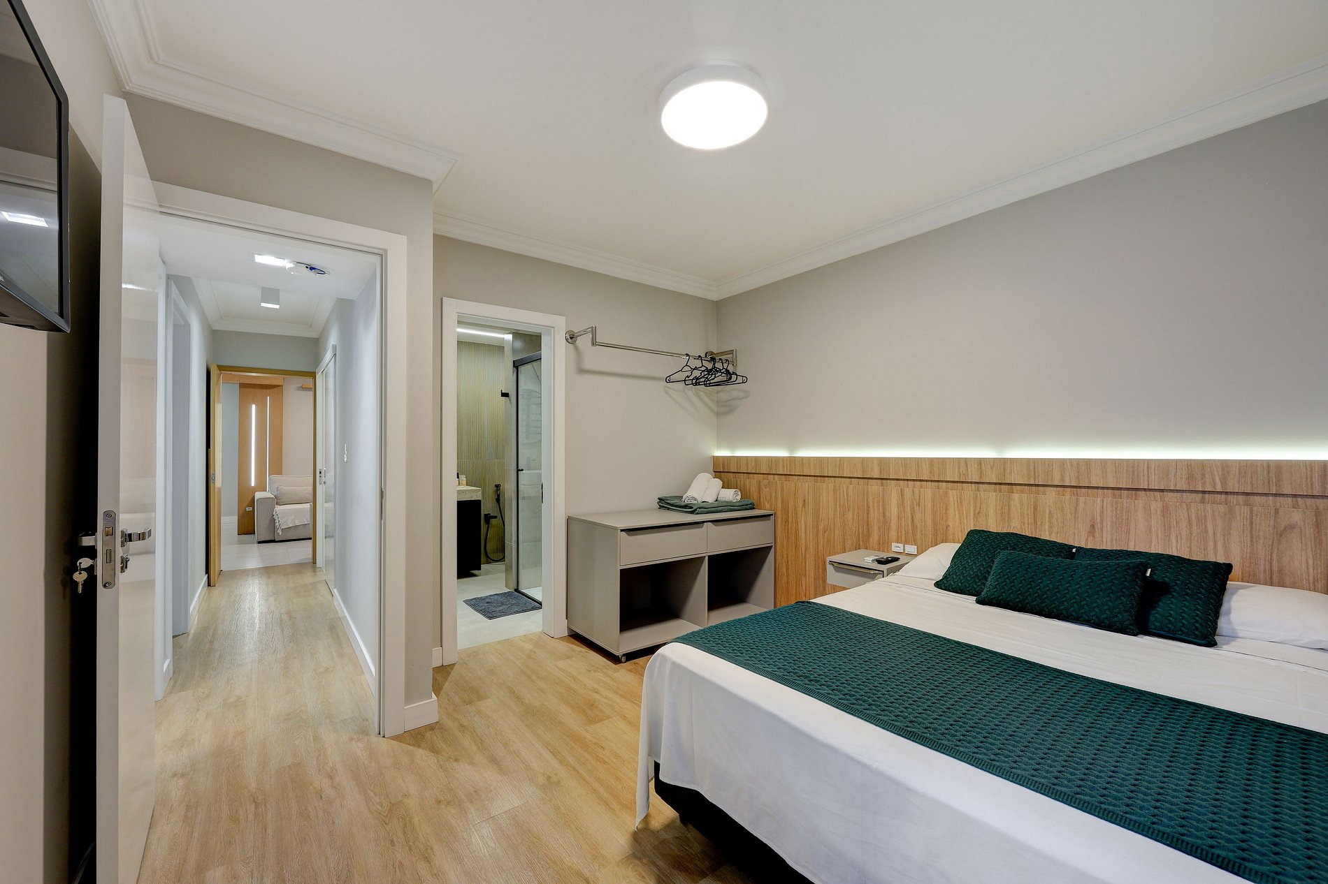 - Extras: Roupas de cama de algodão, blackout nas cortinas, cabides, ferro de passar, Wi-Fi gratuito, e espaço de trabalho exclusivo.